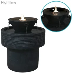 Sunnydaze Decor Sunnydaze 14″H Electric Polyresin Shale Falls Outdoor Water Fountain With LED Lights