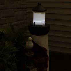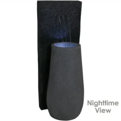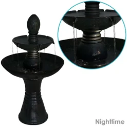 Sunnydaze Decor Sunnydaze 38″H Electric Ceramic 2-Tier Outdoor Water Feature With LED Lights, Green