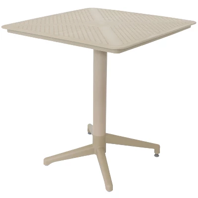 Add contemporary charm to any outdoor or indoor space with this Bellemead dining set. This set includes 2 chairs with a dynamic, x-cross design on the back, and a square table to match. The chairs feature an appealing cross-back design while being ergonomically comfortable and neutral-toned, sure to complement any existing decor. The fiberglass-reinforced polypropylene construction ensures all-weather strength and durability against the elements outdoors. The minimalist-inspired table has a fold-down top for easy storage and is also designed to last with a resin top and base as well as aluminum feet. Get comfortable conversation space for the patio, garden, or balcony to enjoy light, summer breezes effortlessly with friends. Enjoy delicious dinner or refreshing drinks anywhere while this fun, cute, and versatile set creates an inviting space, sure to complement any existing decor or aesthetic. Place indoors or by the pool for more versatile eats and relaxation with loved ones.