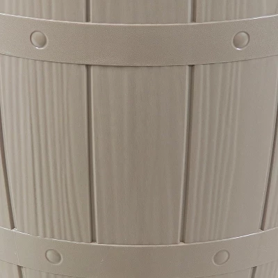 This 3-in-1 patio cooler is sure to be a party favorite as it functions as a coffee table, a side table, and a cooler. It features a height-adjustable tabletop that rises from 22.5 inches to 32 inches tall. It can accommodate up to 50, 12-ounce cans and features a woodgrain design and neutral color scheme that is sure to complement any outdoor or indoor living space. The beverage cooler can easily keep items chilled for up to 6 hours. The UV-protected, recyclable polyproplyene and resin construction ensures long-lasting beauty and durability against the elements outdoors. Easily cater to any party occasion in the summer with this cooler while also being able to seat extra guests all year round with this side table function. Place on the patio, deck, front porch, in the sunroom, kitchen, by the pool, or any other space to keep your drinks cool in fresh, natural style.