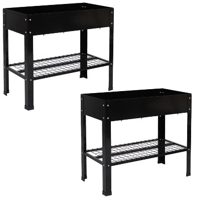 - Sunnydaze Raised Steel Garden Bed with Mesh Shelf – Set of 2