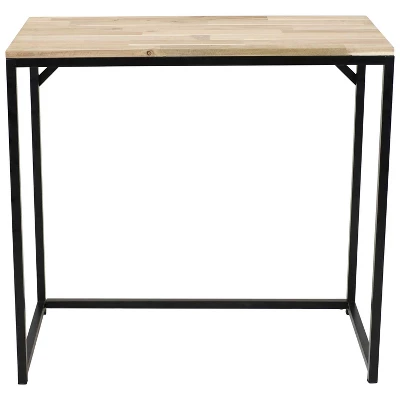 Update any room in your home with this rectangular, indoor, unfinished acacia wooden console table. This narrow console table is perfect for the entryway, bedroom, office, or living room with its slim counterspace and easy access to more storage underneath it. Its skinny design allows it to fit perfectly in small places like under the TV or window, behind the couch, or in narrow hallways. This rustic sofa table features a black powder-coated steel frame with a light brown, unfinished acacia wood tabletop for a modern industrial look that will complement any decor style and stay strong for years to come. Use it to display collectibles, photos, artwork, and all your favorite trinkets, pictures, and plants for a beautiful display anywhere. This table measures 30 inches tall, 31.5 inches wide, and 16.5 inches deep, and weighs 14 lbs for easy maneuverability anywhere desired. Uplift any living space indoors with this unique, modern console table.