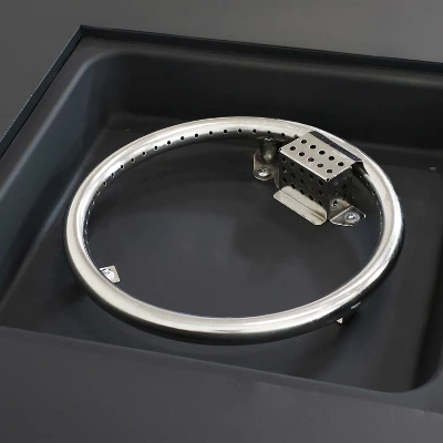 - • GREAT SIZE: This fire pit measures 28″ square x 25.25″ H. The tabletop measures 28″ square x 1.25″ thick. The base measures 19.5″ square and the clearance height is 2.25″ H. The fire area measures 13″ square x 2.25″ deep. The door measures 16.25″ W x 20″ H. The burner ring has a 10″ diameter. The inner chamber measures 17.5″ square x 21.75″ H. The hose measures 20″ long. The unit weighs 36.8 lbs.