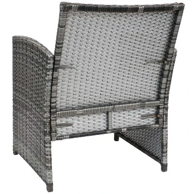 Invite family and friends to unwind in the backyard or on the patio with the Ardfield, 4-piece, patio conversation set. Featuring plush polyester cushion covers with cushy polyurethane foam fill, this furniture adds style and comfort to any outdoor living space. This stylish furniture set has the look of traditional wicker but is made with a steel frame wrapped in polyrattan materials. Polyrattan mimics wicker but is smooth to the touch, won’t chip, and is durable against the elements outdoors. The cushions feature strong and durable polyester covers with plush polyurethane foam padding inside. Polyester is a strong yet soft material that is sure to last year after year, even when used outdoors. These pillows are also easy to clean and maintain. The 3 included accent pillows effortlessly add more comfort and style to the seats. This furniture set would look stunning in the garden, on the front porch, or anywhere else cozy seating is needed.