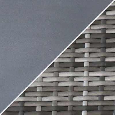 - Powder-coated steel frame wrapped in polyrattan with polyester cushion covers and polyurethane foam fill
