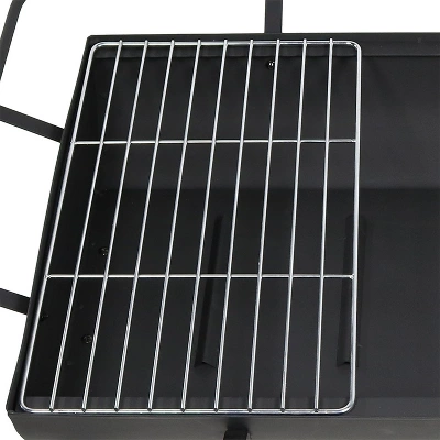 • GREAT FOR BBQ COOKING: This fire pit with cooking grate works well for barbecue cookouts on the lawn. It has a hinged door on the mesh screen to easily access burning logs, the grilling grate, or add firewood to the flame. The tubular metal rail encircles the brazier, making it easily portable to bring along on camping trips.