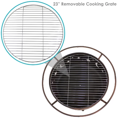 • FULL FIRE PIT GRILL SET: This fire bowl kit includes a sturdy, round spark screen for added safety from flying sparks, a poker stick tool to easily control the flame, a built-in wood grate for better airflow, and a BBQ pit cooking grate so you can cook delicious food in the backyard or while camping.