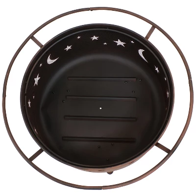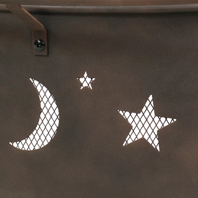 - Decorative star and moon cutouts on firebowl