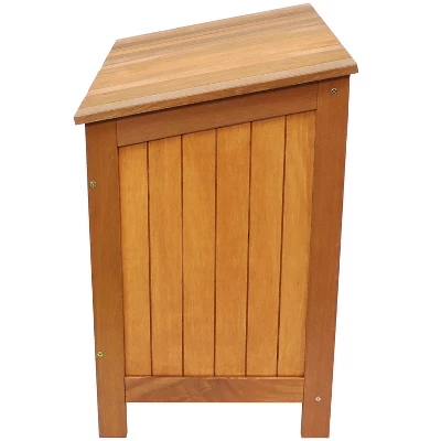 • OUTDOOR WOODEN STORAGE SHED: This garden storage cabinet is constructed of durable meranti wood with a teak oil finish that enhances the natural characteristics of the material. This cabinet is an attractive solution for stashing outdoor cushions, pool toys, garden supplies, paint cans, and more.