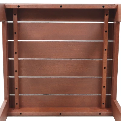 Create a cozy gathering space for your family and friends to enjoy great meals and even better conversation out on the porch, patio, garden, deck, or other outdoor area with this beautiful, square, meranti wooden outdoor table featuring a teak oil finish. This attractive outdoor bistro table is constructed of meranti wood with a mahogany teak oil finish for strength and durability against the outdoor elements. The natural tones will also effortlessly complement any existing style or decor. Whether you are striving for a boho chic or farmhouse style, the clean lines and classic appearance of this versatile piece of furniture will update any outdoor living space. Plus, everything needed to assemble this table is in the box, including the hardware and tools so you can enjoy this beautiful table almost right out of the box. Gather your loved ones and enjoy beautiful evenings out on the patio, deck, or porch, and have a space to chat, gather snacks and drinks, or to relax.