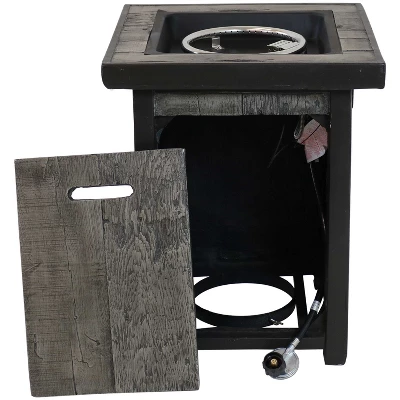 A fire pit is a great place to spend time with friends and family on the patio, deck, porch, sunroom, camp site, or any other cozy, outdoor living space. Featuring durable MGO and metal frame construction and an elegant, weathered wood appearance, enjoy this sturdy fire pit season after season. Because it is powered by liquid propane, it is easy to enjoy the warmth and comfort of a roaring fire with none of the smoke, ashes, or similar maintenance of a typical wood-burning fire pit. Plus, the durable ledge provides a convenient space for food, drinks, and other small items that are needed during an outdoor outing. Using the fire pit is easy, simply assemble the unit, put the included AAA batteries in the ignition, hook up the 20 lb LP tank (please note, a tank is not included) and press the ignition button to start the flame.
