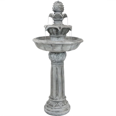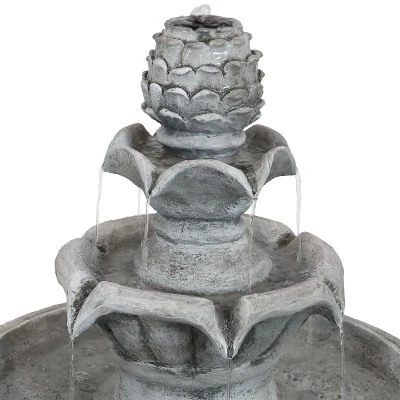 • STRONG AND EASY TO MAINTAIN: Fountain is constructed of polyresin that replicates the look of classic stone and other classic materials; Material is durable and can withstand the elements; Water feature is also easy to keep clean; Water gently bubbles from the top of the fountain and cascades down the tiers below; Pedestal features delicate decorative details for added appeal